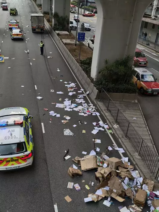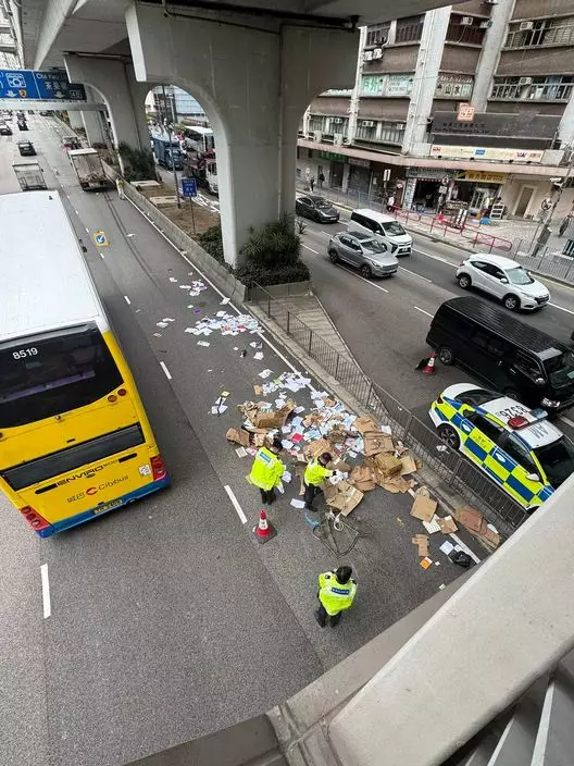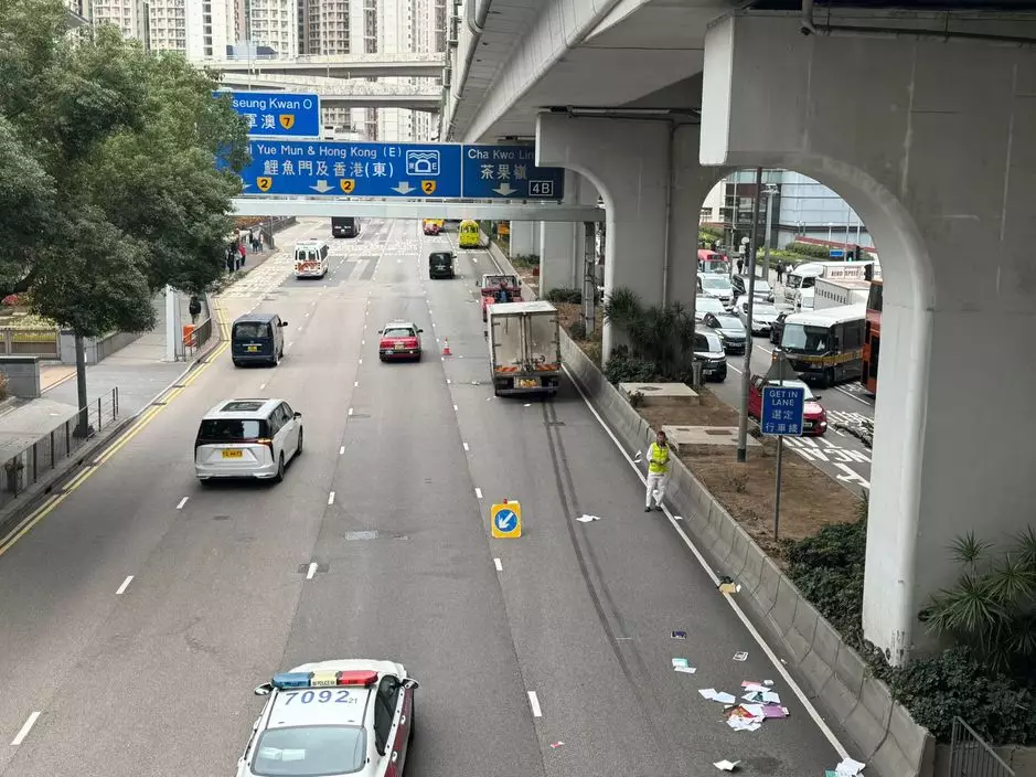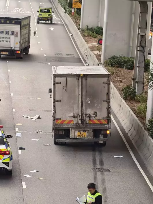 據了解,當時老婦正推着一輛滿載紙皮的手推車準備過馬路,突遭駛經的貨車撞倒。現場散落大量紙皮,並留有一灘血迹。警方現正調查意外原因。