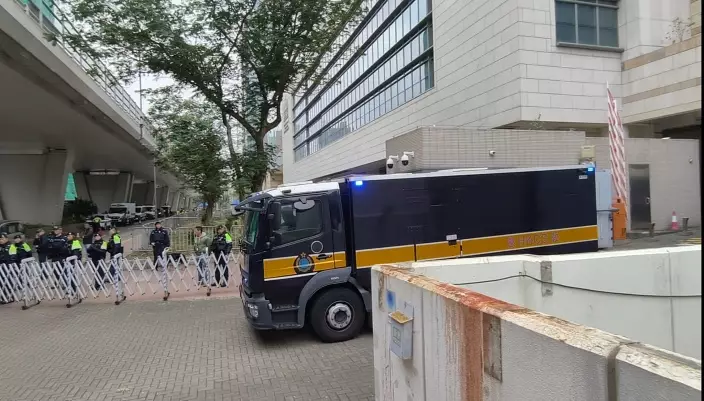 黎智英穿米白色外套入庭,並帶上助聽器,顯得精神及健康良好。法官杜麗冰指,判刑理由書共47頁。