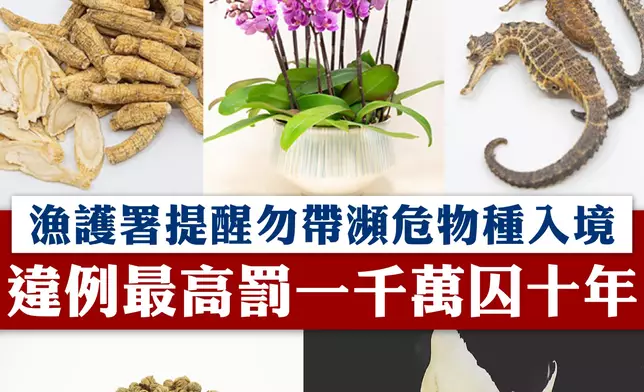 漁農自然護理署(漁護署)星期一(二月九日)提醒市民,切勿攜帶或網購未領有所須許可證的瀕危動植物入境香港。