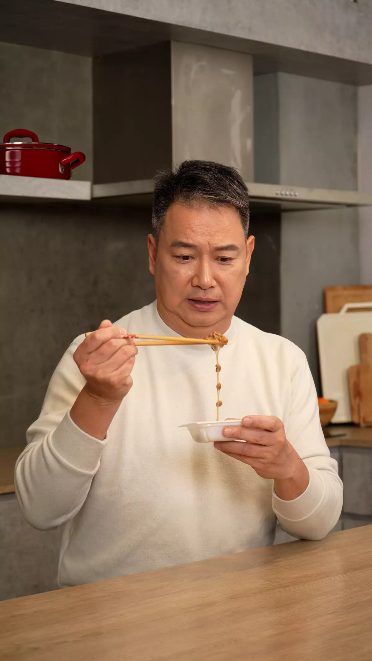 為改善情況,蔡子健參考客戶的心臟科醫生建議,開始服用一款日本製納豆激酶補充劑。他指產品以膠囊形式包裝,克服了傳統納豆的濃烈氣味,讓他能持續服用。