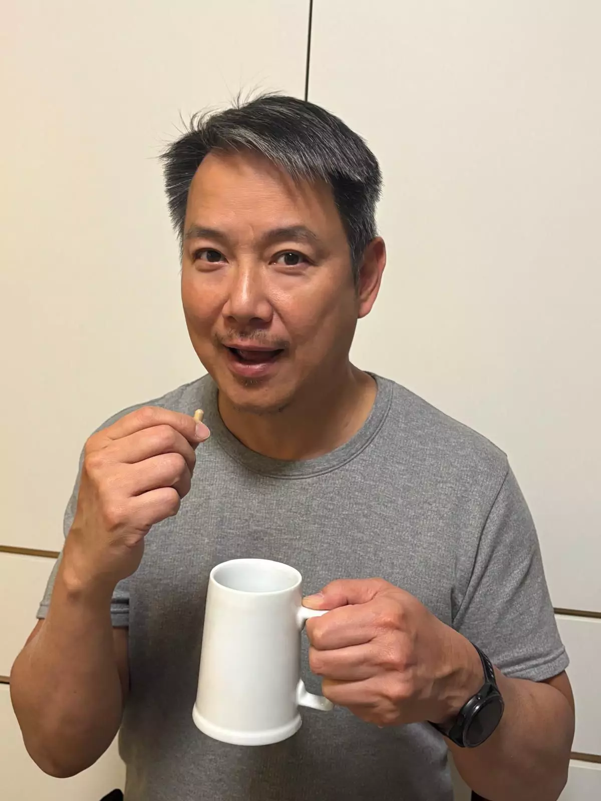 他分享服用後最明顯分別,是即使進食燒肉啤酒放題,以往面紅耳熱、心口頂悶的感覺也減退。現時他改為每日服用兩粒作長期保養,並強調健康管理的重要:「買保險唔買埋健康,再巨額嘅保單都只係一張紙。」