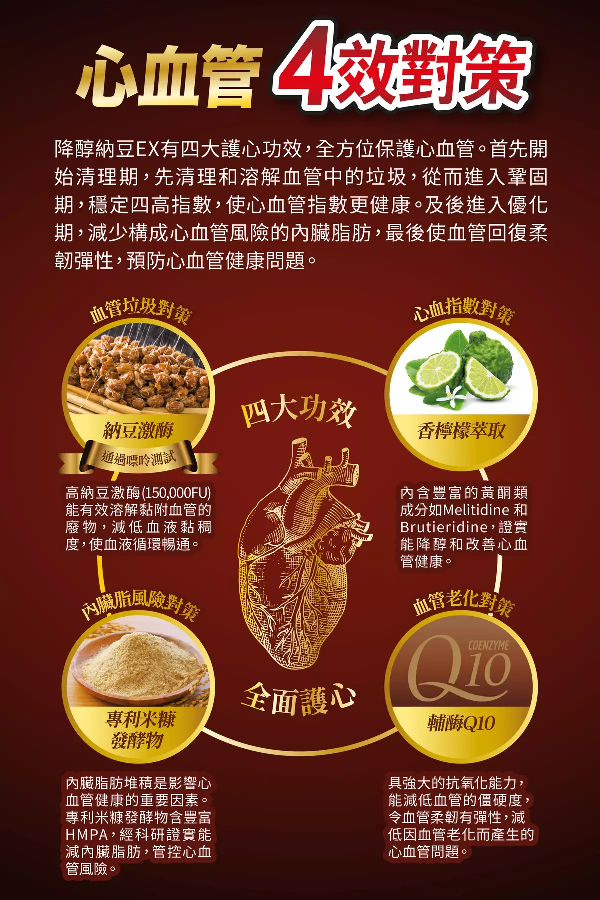 「WholeLove MED降醇納豆EX」有四大護心功效,全方位保護心血管。