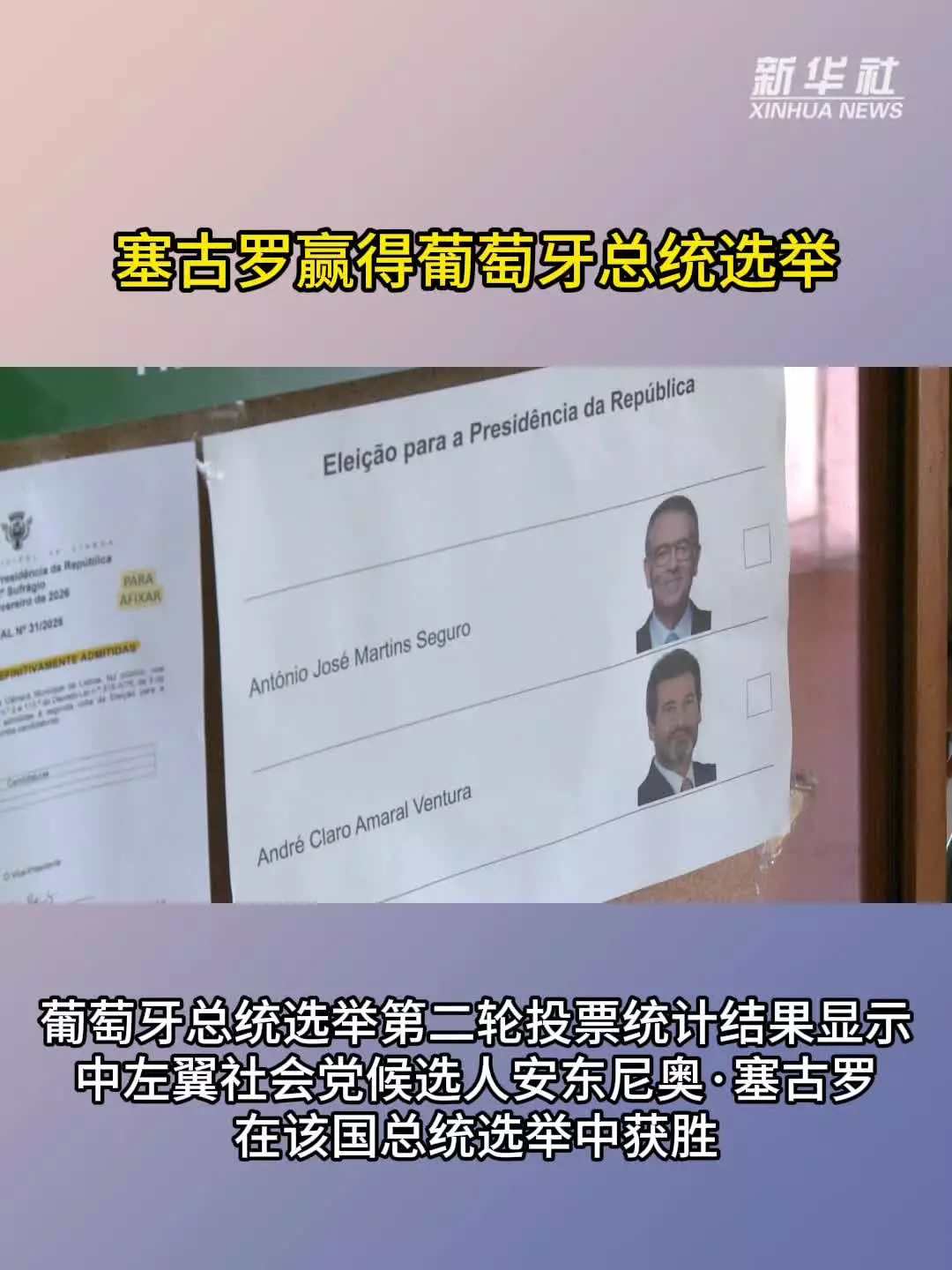 葡萄牙內政部公佈的第二輪投票結果顯示,在對超過九成九選票進行統計後,塞古羅得票率為66.8%,對手極右翼政黨「夠了」黨領導人文圖拉得票率33.2%。