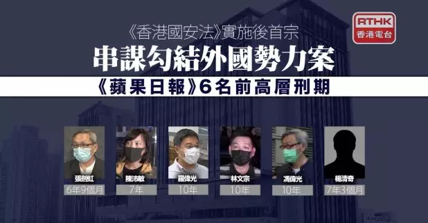 壹傳媒創辦人黎智英串謀勾結外國勢力案,其餘8名被告均認罪,包括6名《蘋果日報》前高層及2名重光團隊成員。
