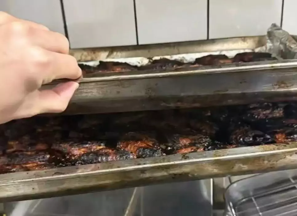 大學生打工疏忽忘計時,導致逾200隻雞翼被烤焦。影片截圖