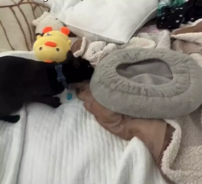 美國一名女飼主因對貓毛過敏,特意為愛貓添置專屬貓床,惟黏人愛貓竟直接將「小窩」直接搬上床,令她既無奈又好笑。