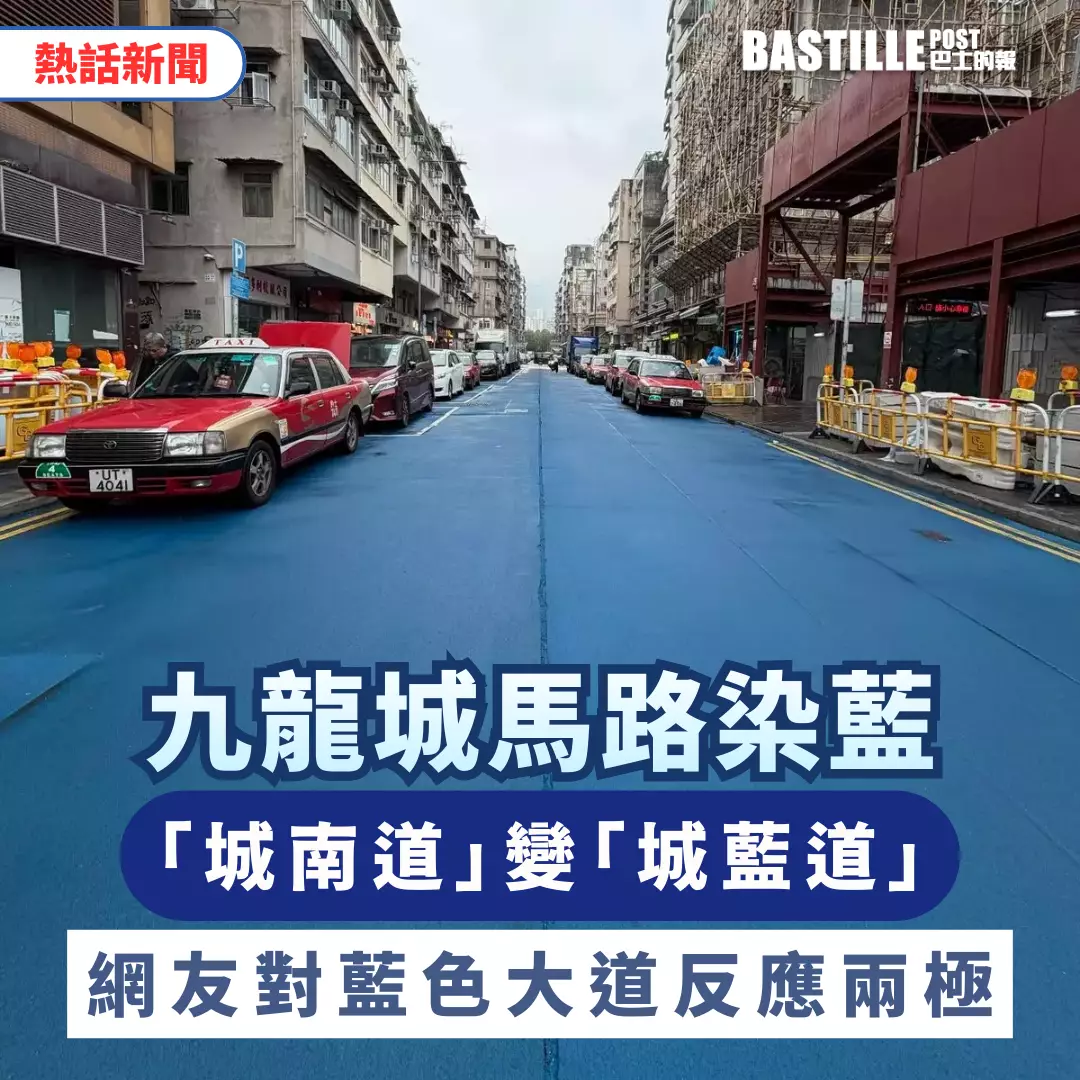 有網民在社交平台Threads上載相片,留言指「上星期經過九龍城城南道,唔知係咪因為工程關係,連路面都油上全藍色好靚」。帖文曝光掀起熱議,不少網民表示同樣發現此奇景:「我今日行經都影低咗想上Threads問,結果碌到你已經問咗」