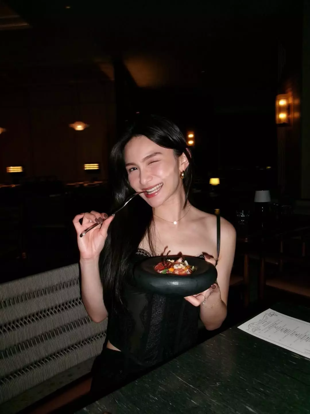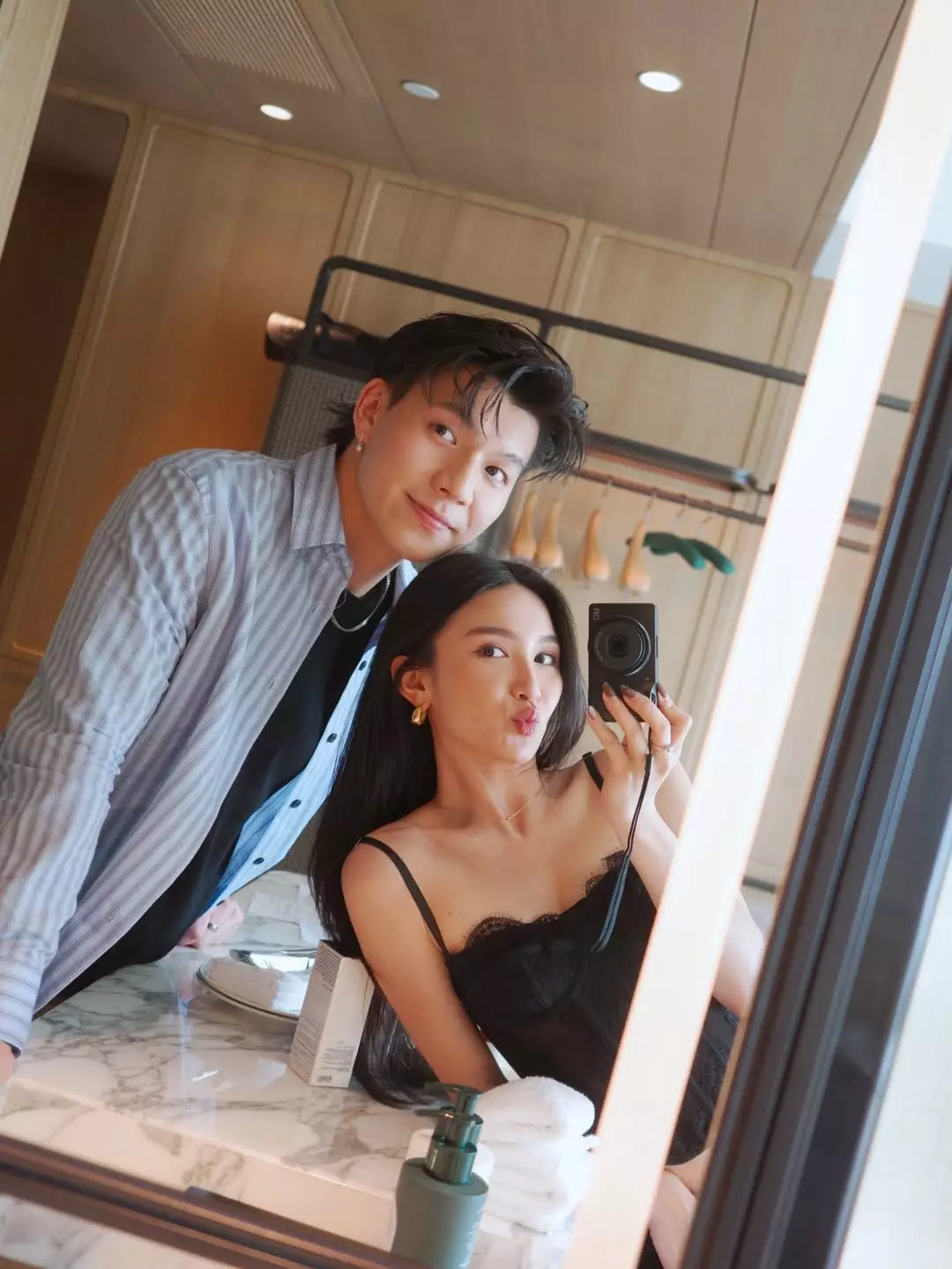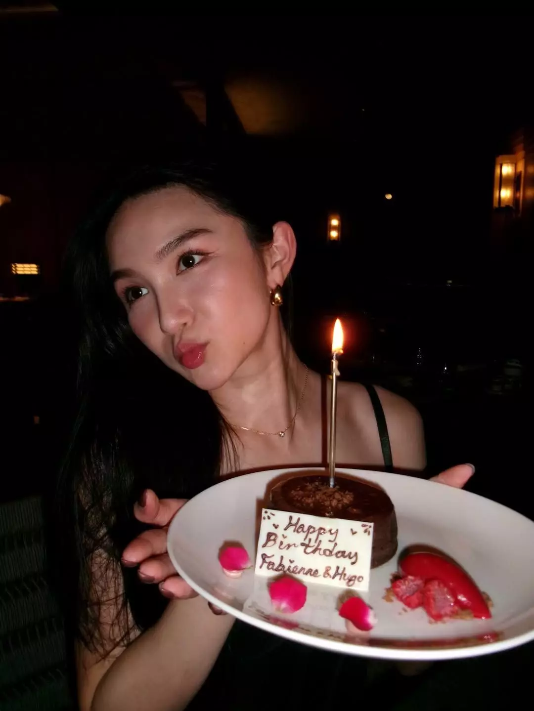 關楓馨在IG晒出多張甜蜜照片,並留言:「「Early Valentine’s Staycation(with so many birthday surprises!!!)」相中可見,關楓馨穿著黑色吊帶搭配牛仔褲,在酒店房內捧着蛋糕四處打卡,Hugo全程負責為女友影靚相,又與女友一同合照,畫面甜蜜又浪漫!而二人除了在酒店房內享用蛋糕與香檳,又去到餐廳品嚐美味晚餐,從關楓馨臉上的笑容可見她非常滿意男友的安排!