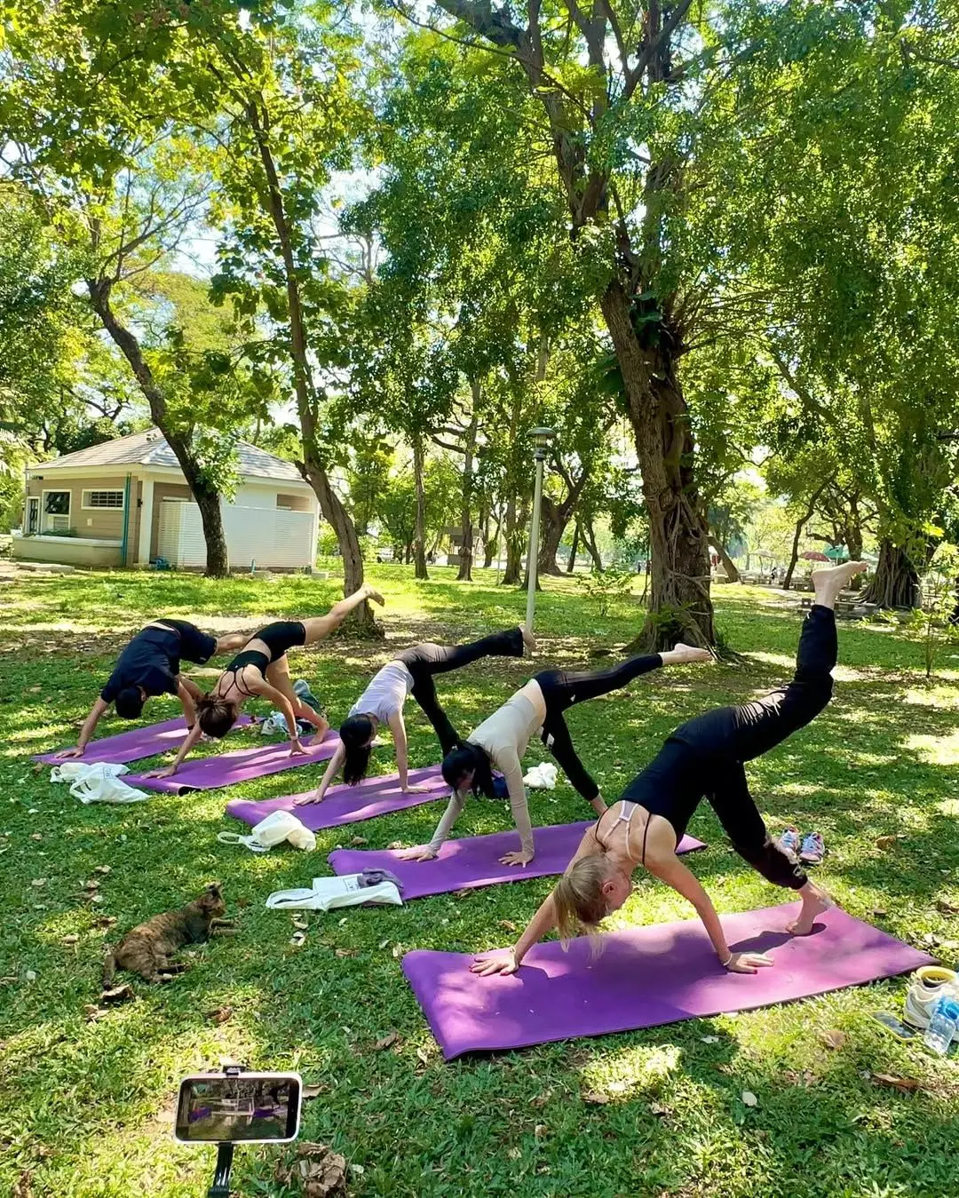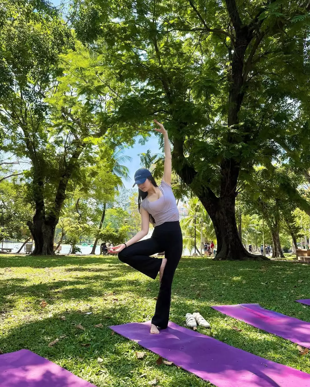 馮盈盈還分享了體驗戶外瑜伽課程的靚相,可見她一身貼身瑜伽服,大騷零贅肉的Fit爆身材!她表示:「躺在草地上,聽着風聲和鳥鳴,感受陽光透過樹影灑下來,那種與大自然的連結特別療癒,比起平時在香港室內練習瑜伽,感覺身心都更放鬆、更自在。」