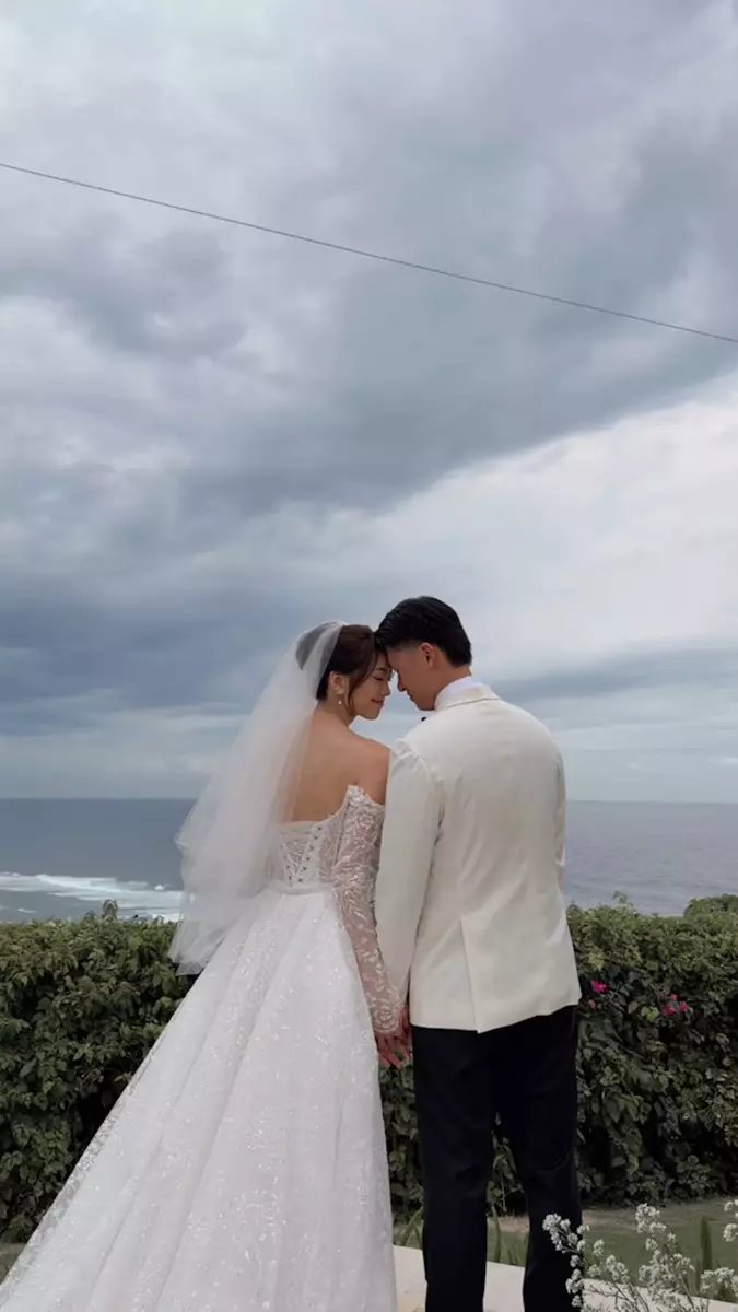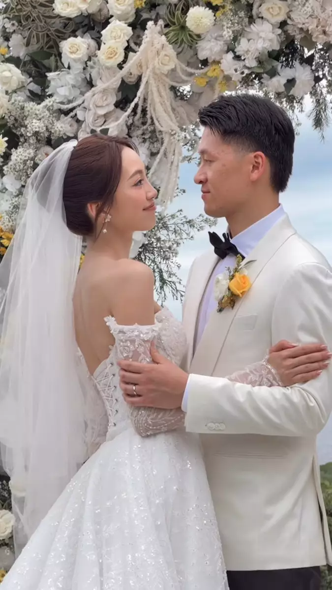 完成中式儀式後,楊詠彤換上一襲喱士白色低胸婚紗,盡展模特兒高挑身材。她與老公在海邊行禮,在峇里島優美的景色,以及一眾親朋好友的見證與祝福聲中,一對新人許下愛的誓言又甜蜜錫錫,畫面相當浪漫!