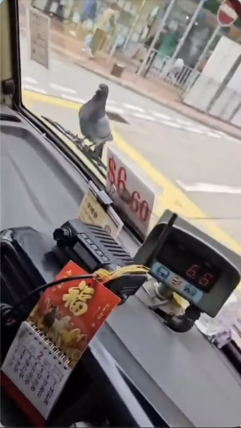 facebook群組「車cam L(香港群組)日前瘋傳一段7秒的短片,只見一輛小巴正在馬路上行駛,不過仔細一看,車頭的水撥上面竟然有隻鴿子「企定定」,不管架小巴如何行都堅持不肯離開,簡直是車頭行走的「裝飾品」。
