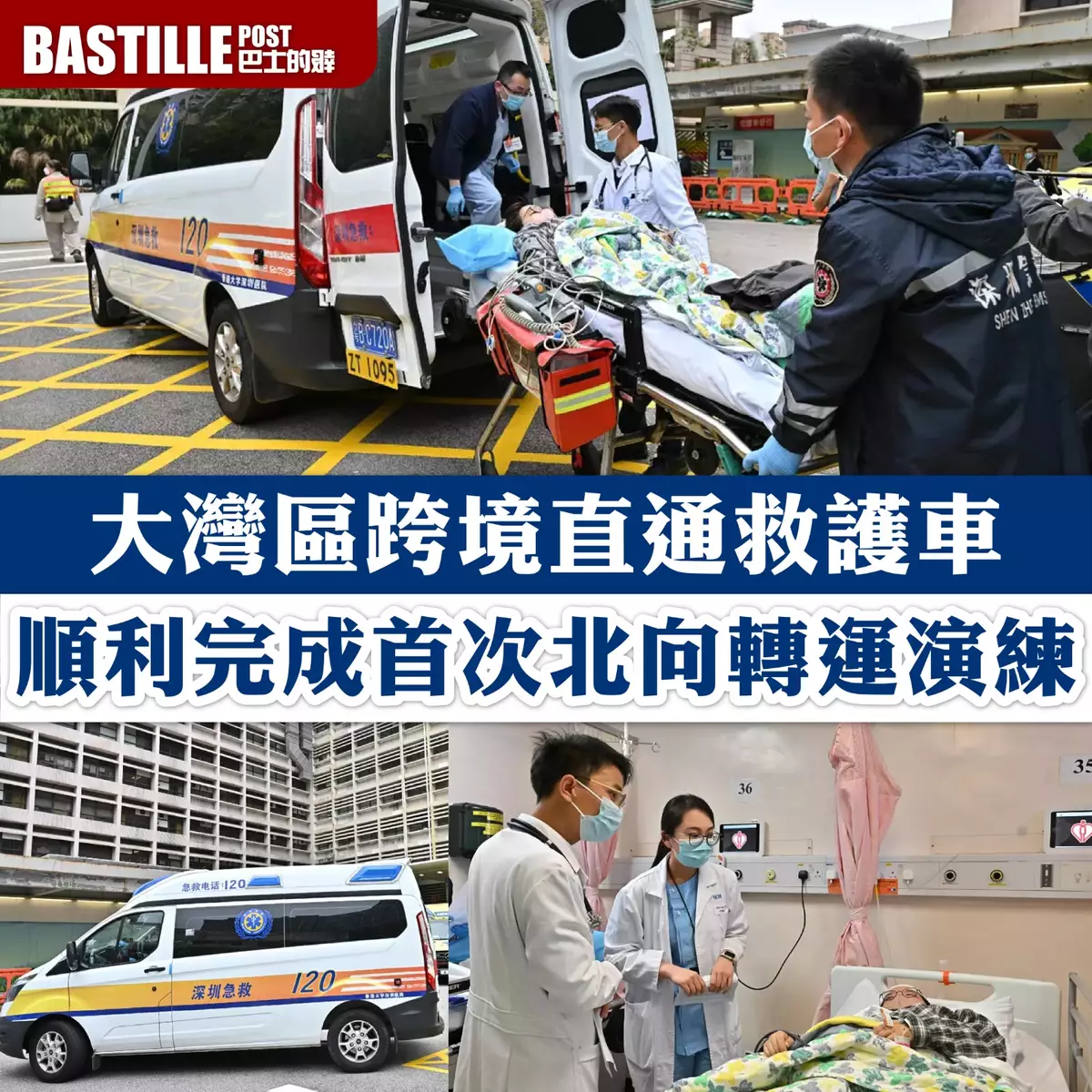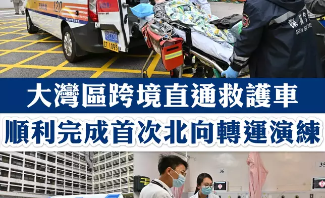 特區政府聯同廣東省和深圳市政府就「大灣區跨境直通救護車試行計劃」進行首次北向轉運演練,測試救護車,跨境由伊利沙伯醫院至港大深圳醫院的行車路線及出入境安排。
