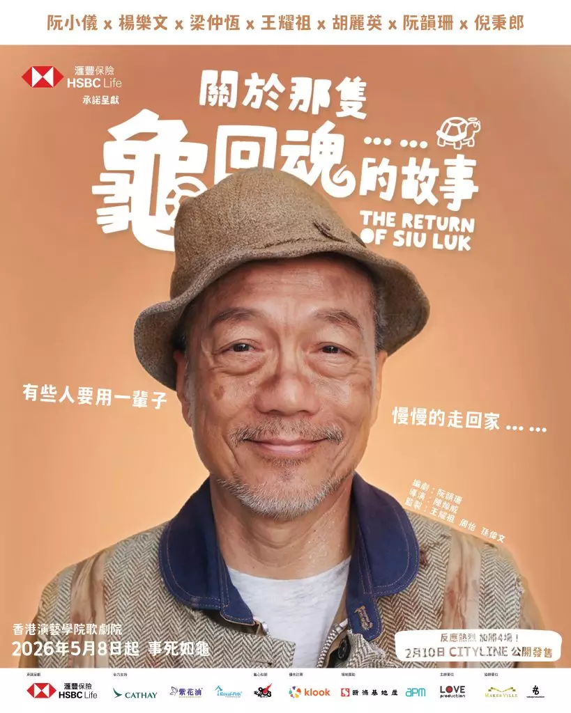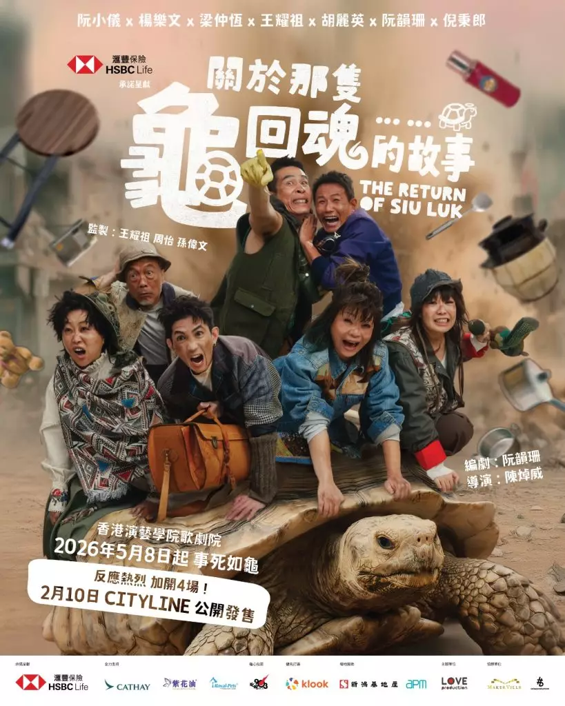滙豐保險承諾呈獻,由 Love Production 主辦、MakerVille 及 VaB Production 協辦,阮小儀、楊樂文、梁仲恆 、王耀祖、胡麗英、阮韻珊及倪秉郎主演的年度大型溫情舞台喜劇《關於那隻龜回魂的故事》預售反應超級熱烈,團隊宣佈加開4場,共18場演出,現已於cityline.com 正式公開發售,劇迷不容錯過,約定一齊入場笑到喊!