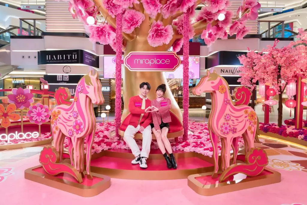 踏入萬象更新的初春,象徵著希望與活力的馬年正迎面而來,由即日起至3月1日,尖沙咀Mira Place將於今個農曆新年活動期間打造桃花滿「緣」新春打卡裝置,以馬年開運五步曲帶你漫遊桃花園,祈求來年人緣暴升,迎接桃花盛開的馬年!當中設全港首個12米高「滿天福『緣』桃花樹」裝置,超過3,888朵爛漫的大小繁花由花池蔓延到黃金色的巨大樹幹一直延展到上空,配合閃爍耀眼的光影穿透紅粉緋緋的桃花,讓人目不暇給;踏上「花蝶良緣橋」一雙一對的彩蝶互相依偎在橋邊,等待你前來到訪「桃氣花語開運風車」沾沾好運氣,說不定走到橋尾就能遇上良緣;而「馬年祥雲雅座」隨著高聳入雲的桃花樹裝置延伸,悠然坐上雅座,在寓意吉祥好運的一對駿馬面前,觀賞漫天桃花兼誠心祝願馬年如綻放的繁花一般朝氣勃勃,明艷照人!