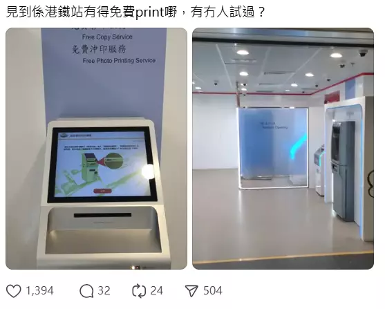 在這個年代如家中沒有打印機,要出外找列印及影印服務,都挺不方便。近日就有網民在社交平台分享他的大發現,指原來港鐵詀有提供免費列印,影印及沖印的設施,更詢問有沒有其他網友曾經使用過。