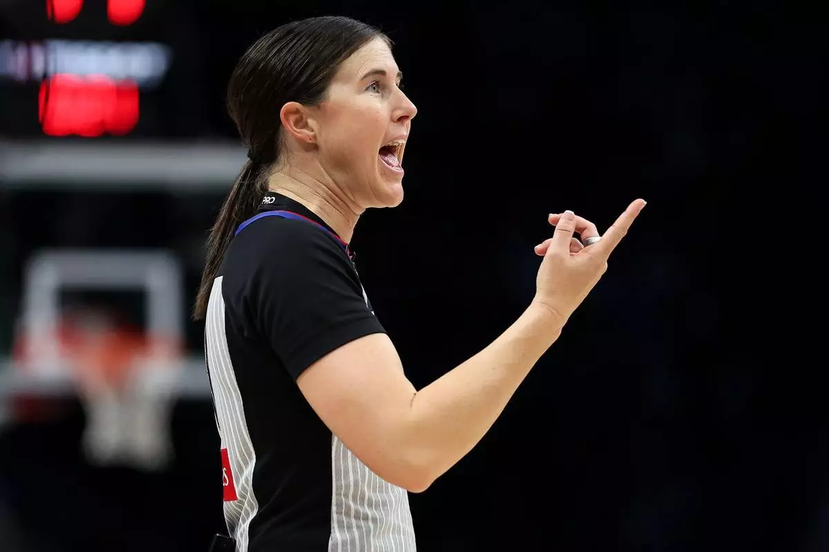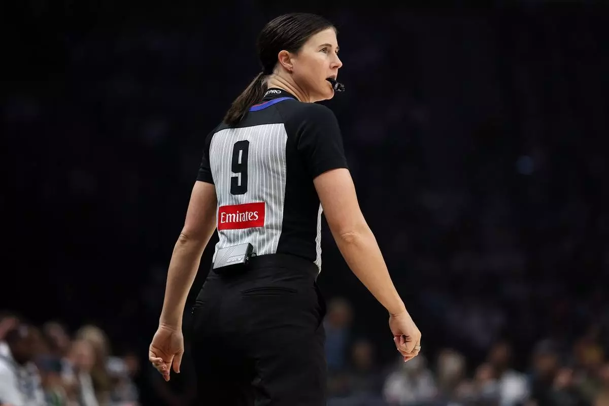 NBA球證娜塔莉莎高在明尼亞波利斯(Minneapolis)執法明尼蘇達木狼隊(Minnesota Timberwolves)對新奧爾良塘鵝隊(New Orleans Pelicans)的NBA籃球賽上半場,攝於2026年4月12日。(美聯社圖片/Matt Krohn) AP圖片