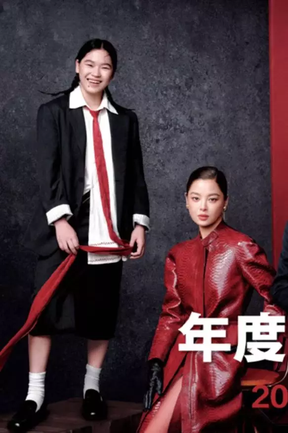 18歲全紅嬋(左)孖辮型格皮衣造型登《人物》雜誌。微博圖片