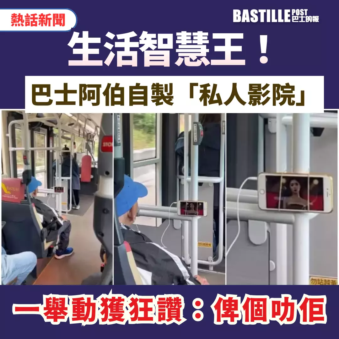 據該網友分享的相片可見,老伯用一條平平無奇的橡筋,將自己的手機牢牢綁定在巴士扶手與電線之間,成功為自己打造出一個「私人影院」,老伯可以解放雙手,悠然自得的在搭巴士途中欣賞影片,相片曝光,掀起網民熱議。