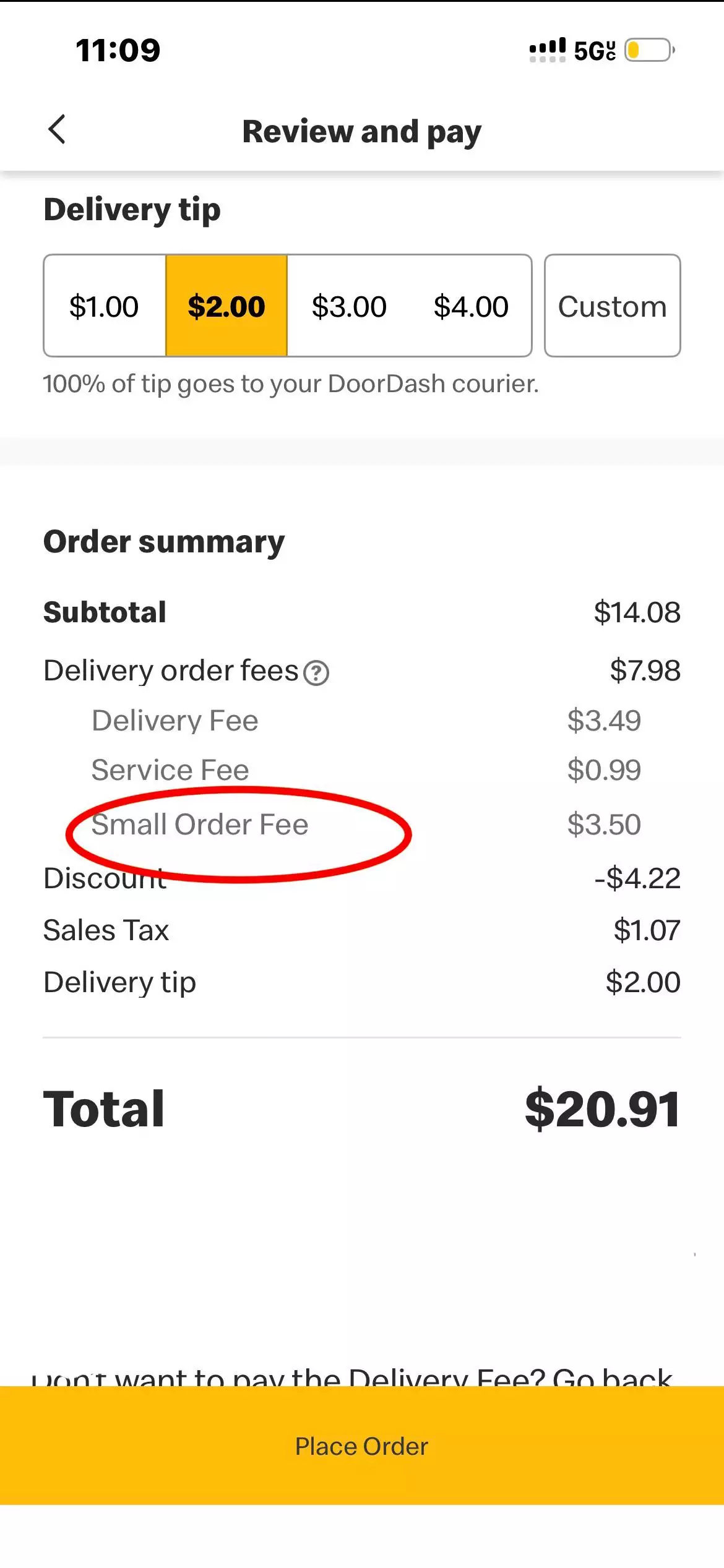 雖然DoorDash沒有列出「小額訂單費」,但會對麥當勞外賣服務向顧客收取費用。在紐約,透過DoorDash訂購5.29元的麥香雞,需額外支付1.99元外賣費、3元服務費,以及1.99元的「紐約市監管回應費」(NYC Regulatory Response Fee);加上稅與各項費用,這份5.29元的麥香雞總價將飆升至12.74元。其他外賣平台,如Postmates和Uber Eats,也採用類似的外賣費用政策。