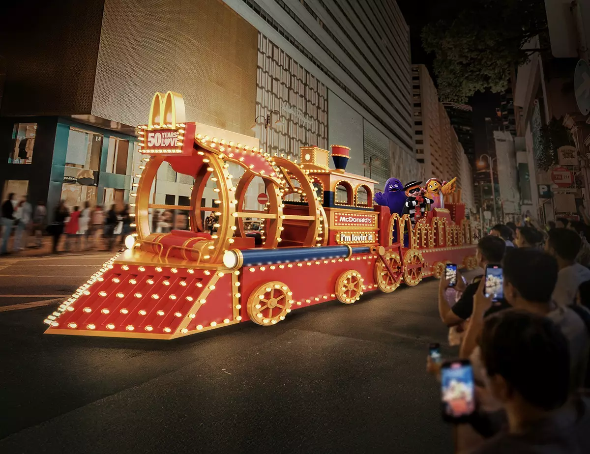 香港麥當勞承接去年 50 週年舉辦一連串精彩慶祝活動的強勢,將再下一城於今個農曆新年呈獻 50 週年壓軸鉅獻,帶來以 80 年代分店設計裝置作藍本的特色花車「香港麥當勞 50 週年經典復刻火車」。此別具意義的 50 週年花車不但會首度參與由香港旅遊發展局主辦的「國泰新春國際匯演之夜」,其設計更會由即日(2 月 11 日)起率先於連接港鐵中環站與香港站之間的通道登場,歡迎公眾搶先影相打卡欣賞以花車與麥當勞樂園角色為主題的超巨型「麥當勞新春花車派對」隧道,感受濃厚新年氣氛。麥當勞 50 週年花車熱潮更會進一步延伸至線上和線下,不論全港麥當勞餐廳、麥當勞 App,以至電視台均會見到其蹤影,並同時於麥當勞 App 推出全新 AR 遊戲「全城捕捉麥當勞花車」,大送總值超過港幣 500 萬的豐富獎品,包括超級大獎「免費 365 份巨無霸套餐」,與大家一同慶祝馬年來臨,預祝全港市民及旅客「日日 lovin’ it、事事 lovin’ it」!