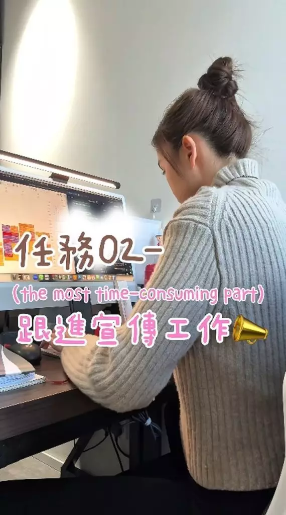 片中見她朝早搭巴士途中已急急腳覆客,到達工作室後親自跟進宣傳,由整海報、剪片到拆快遞裝飾全部落手做,忙到下午三點半先有時間食晏,認真搏盡。做到半夜收工回家,她依然無得抖,要喺客廳拉筋放鬆身體,勤力過做藝人。