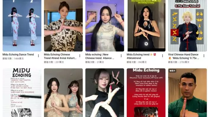 出現以彌渡山歌為背景音樂的手勢舞。Tiktok截圖