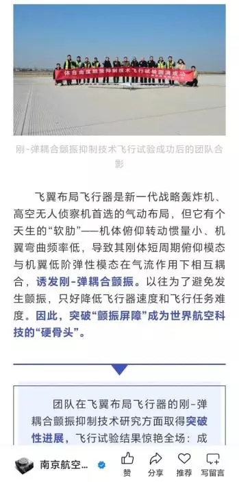 南京航空航天大學團隊在剛彈耦合顫振抑制技術取得突破,意味著新一代飛翼轟炸機有望打破亞音速飛行的物理限制