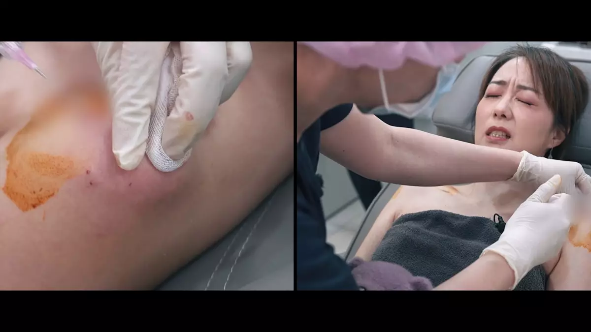要靚當然要付出,玩具針筒般粗幼的針,逐支打落Ada膊頭位置,透過鏡頭觀看的Regina、關嘉敏、陳嘉佳都忍不住面有難色,猛呼「好粗」。經過一輪注射,雖然痛但Ada表示已看到即時效果,她興奮說︰「睇到呀,之前望膊頭係圓嘅,而家望落去尖咗好多,自己係無可能練到。」事實上施針前後的左右肩,有極顯著分別。