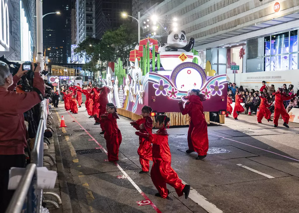 花車巡遊在年初一晚上8時開始,花車將途經廣東道、海防道等,並以喜來登酒店為終點,旅發局於當晚6時起,會在尖沙咀一帶舉行街頭表演。警方表示,封路由下午3時半起分三階段進行,期間天星碼頭及中港城巴士站會關閉。