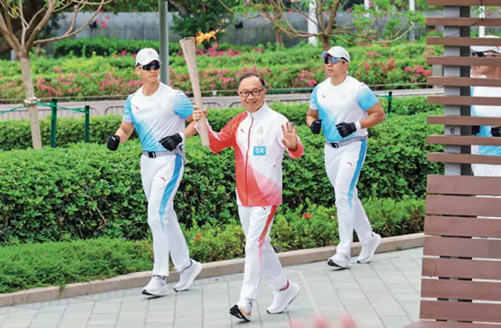 在第十五屆全運會,馬會作為全運會香港賽區唯一合作伙伴,撥款逾5億港元支持香港賽區及廣東賽區的籌備和賽事工作。此外,馬會透過「賽馬會優秀運動員獎勵計劃」,向十五運會及殘運會奪獎的港隊運動員,合共發放逾1,800萬港元的現金獎勵,以示嘉許。他擔任十五運會的火炬手。「當時我是有點壓力,那火棒的重量還是有的,我一直警惕自己不要跌倒、不要跌了火炬。」