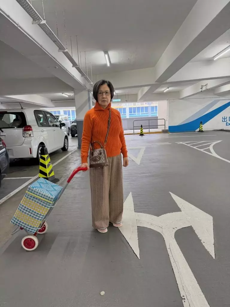 汪明荃(阿姐)與羅家英剛完成北京、天津粵劇演出,隨即撲去辦年貨。阿姐日前於社交平台上載停車場相,素顏穿橙色冷衫,手拖藍黃格仔買餸車,即被網民洗版式激讚:「架車好型」、「貼地又有型」。