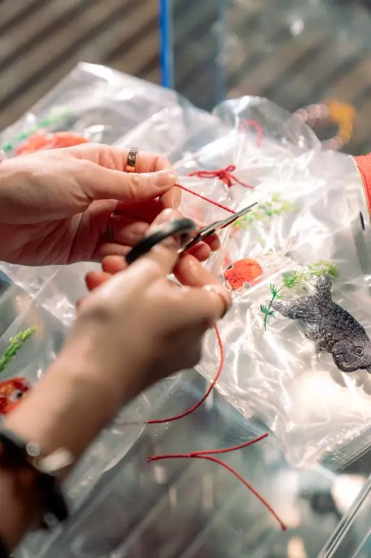 許開嬌的作品《Swimming in Light》將於香港半島酒店外牆歡迎賓客。剛獲選代表香港參與第 61 屆威尼斯視藝雙年展的許開嬌,擅長以細膩手法把尋常物件轉化成為奇妙的寧謐時刻。她擁有中國傳統工筆畫的深厚根柢,讓巧手刺繡的金魚彷彿圍繞在酒店外牆、遮陽篷和兩輛具標誌性的勞斯萊斯之間游動。纖細的形態在光線下輕盈閃爍,把露台餐廳的窗戶變成波光粼粼的水池,讓色彩、倒影與動態交織成為一場輕柔舞蹈,於酒店内外均可欣賞。而露台餐廳的入口則會擺放具玩味且富當代感的雕塑作品,讓賓客在光影之中展開詩意的藝術旅程。