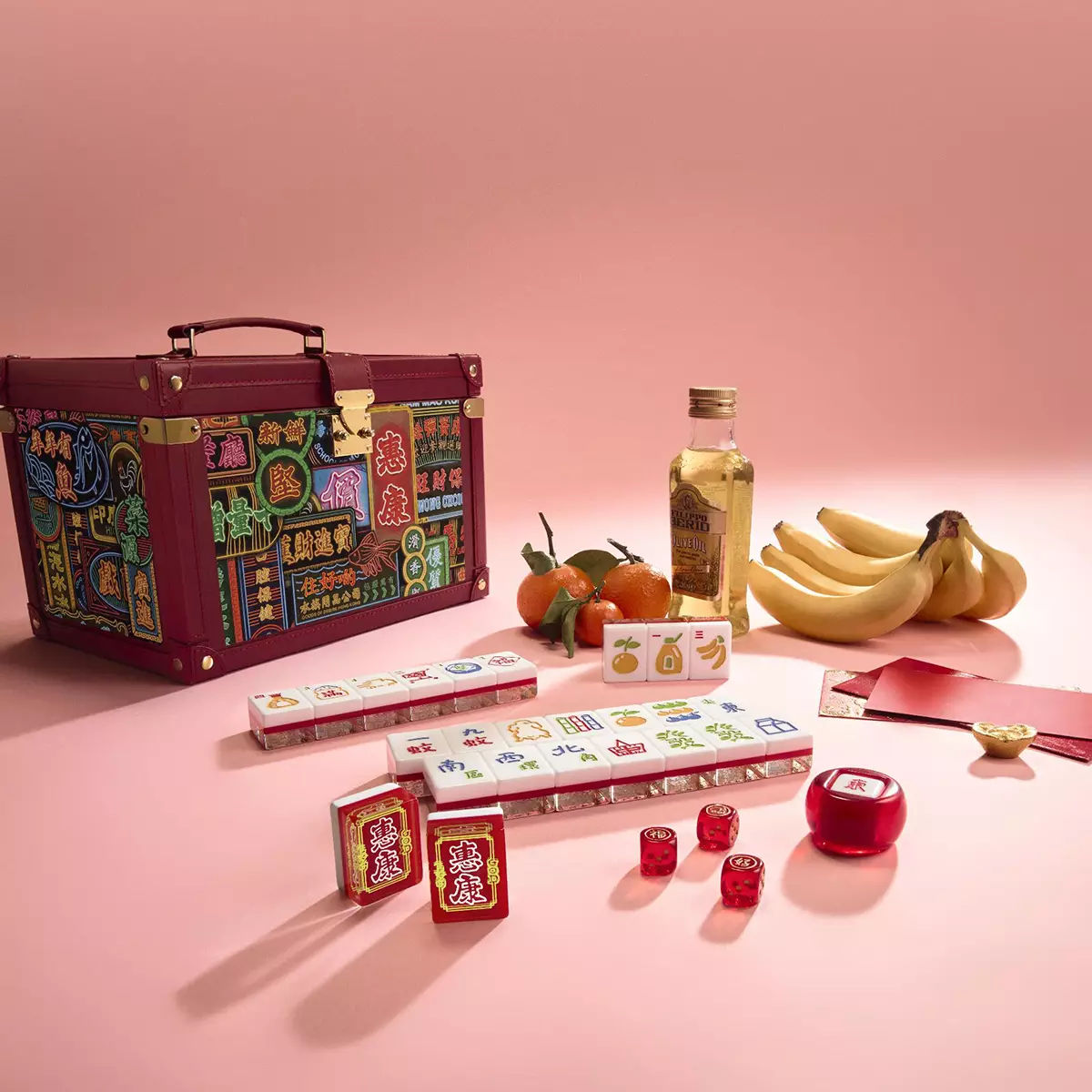 全副共有 144 隻晶瑩剔透的水晶麻雀,每一顆皆內嵌 Douglas 親手設計的超市賀年元素,例如象徵「大吉大利」的柑橘、寓意「招財進寶」的香蕉、「年年有餘」的常滿米缸等;内附的三粒骰子分別印上象徵惠康網購的送貨車圖案、「好」及「福」,寓意惠康與住好啲攜手將祝福送至全香港,寓意新一年牌運亨通,適合家庭團聚娛樂。