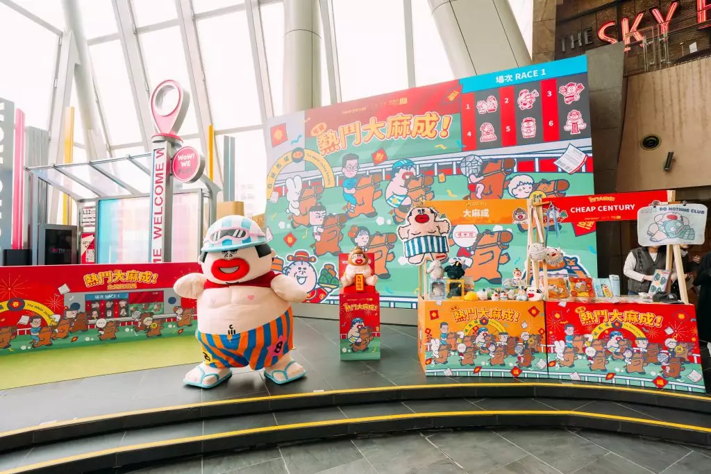 「熱鬥大麻成」新春市集設計靈感取材自「馬場」,由「白紙馬經」宣傳單張、投注櫃台設計概念的攤位檔口,到大麻成「馬場賽事直播」巨型插畫,讓朗豪坊7至12樓化身為趣味馬場場景,每個角落都充滿了新年熱鬥馬仔的歡欣魅力。