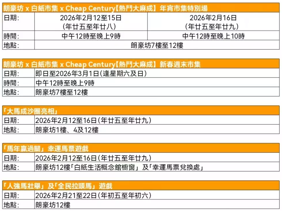 <朗豪坊 x 白紙市集 x Cheap Century【熱鬥大麻成!新春市集】活動一覽>