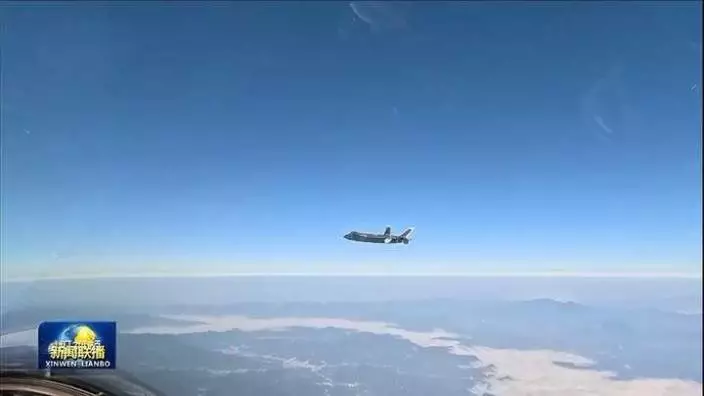 殲-20雙機編隊高空巡航,利用先進航電系統對台島全境實施「降維打擊」式的監控,如入無人之境。