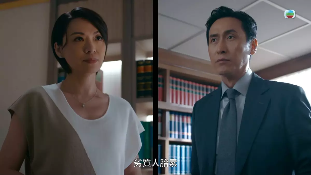 昨晚(12日)一集是單元《美麗誘罪》結局篇,包希仁(馬德鐘飾)懷疑家勉(丘梓謙/蔥頭飾)顧問宋樂廷(黎澤恩飾)是黑心人胎素幕後黑手,同時有感家勉在事件中難辭其咎,故即使備受善昱(蔣家旻飾)及頌星(陳煒飾)嚴斥及壓力,仍堅決勸家勉自首兼指證樂廷…受害者蘇太(劉桂芳飾)不治離世,家勉罪名由非法傷人變成誤殺,頌星大感緊張,出盡板斧甚至不惜辭去律政司一職欲為家勉辯護,但家勉選擇自辯。最終家勉在庭上因受不住良心譴責、含淚愧疚認罪,頌星傷心欲絕,與包希仁關係更趨惡劣…
