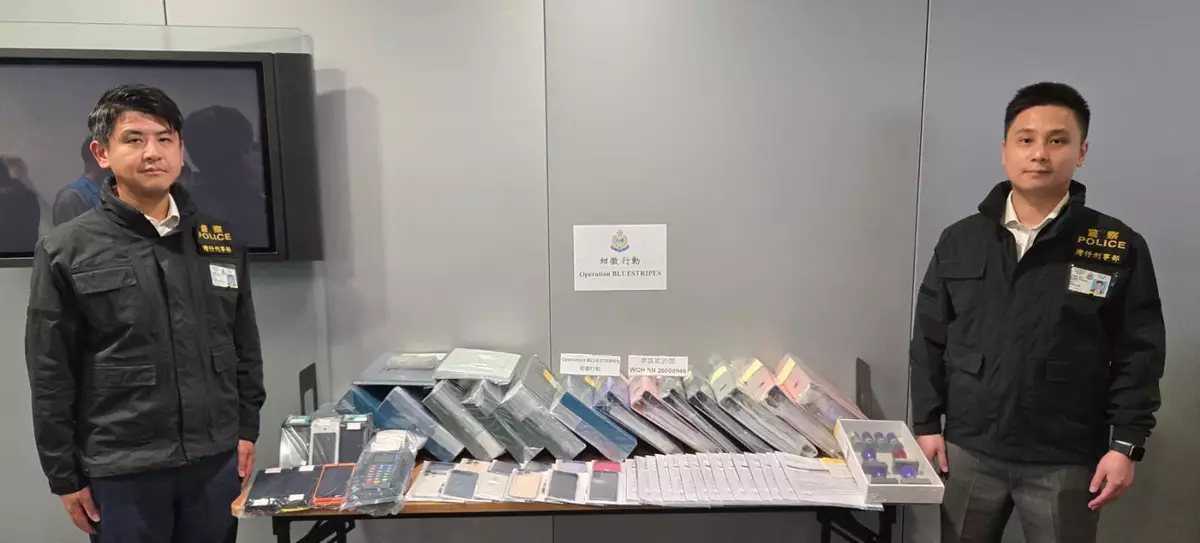警方灣仔警區總督察(刑事)劉曉徽表示,灣仔警區刑事部於26年1月下旬接獲多名市民報案,指一間位於灣仔集成中心的本地公司,聲稱以提供不同服務為餌,包括代受害人向政府申請資助,例如科技券、中小企業市場推廣基金、BUD專項基金等,共騙取受害人接近400萬港元。灣仔警區重案組第三隊立即展開調查,迅速鎖定多名疑犯,並於過去兩個星期,即由26年2月4日至2月12日期間,執行代號「紺徽」的拘捕行動,拘捕21人,年齡介乎25至59歲,全部均為本地人,罪名為「串謀欺詐罪」,相信行動已成功瓦解該詐騙集團。
