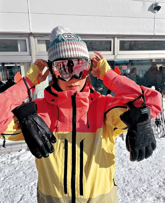 2024年初她在社交平台分享滑雪相,太陽眼鏡反光意外洩露一名6呎型男攝於鏡後,即被網民揣測「破Dry成功」!