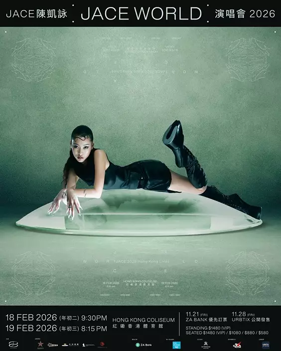 陳凱詠JACE首個個人紅館演唱會《JACE WORLD》將於2月18及19日(大年初二、初三)假紅磡香港體育館隆重舉行。為兌現與歌迷的約定,JACE全程親力親為參與製作,更成功爭取紅館史上首次開放企位區域,打破傳統座位界限,務求與觀眾零距離互動,一同投入最熾熱的音樂派對。