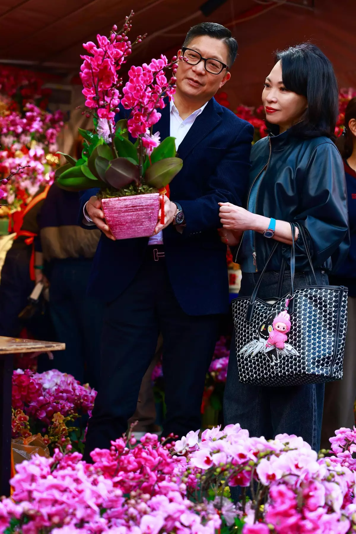 鄧炳強情人節花市買花贈夫人。FB圖片