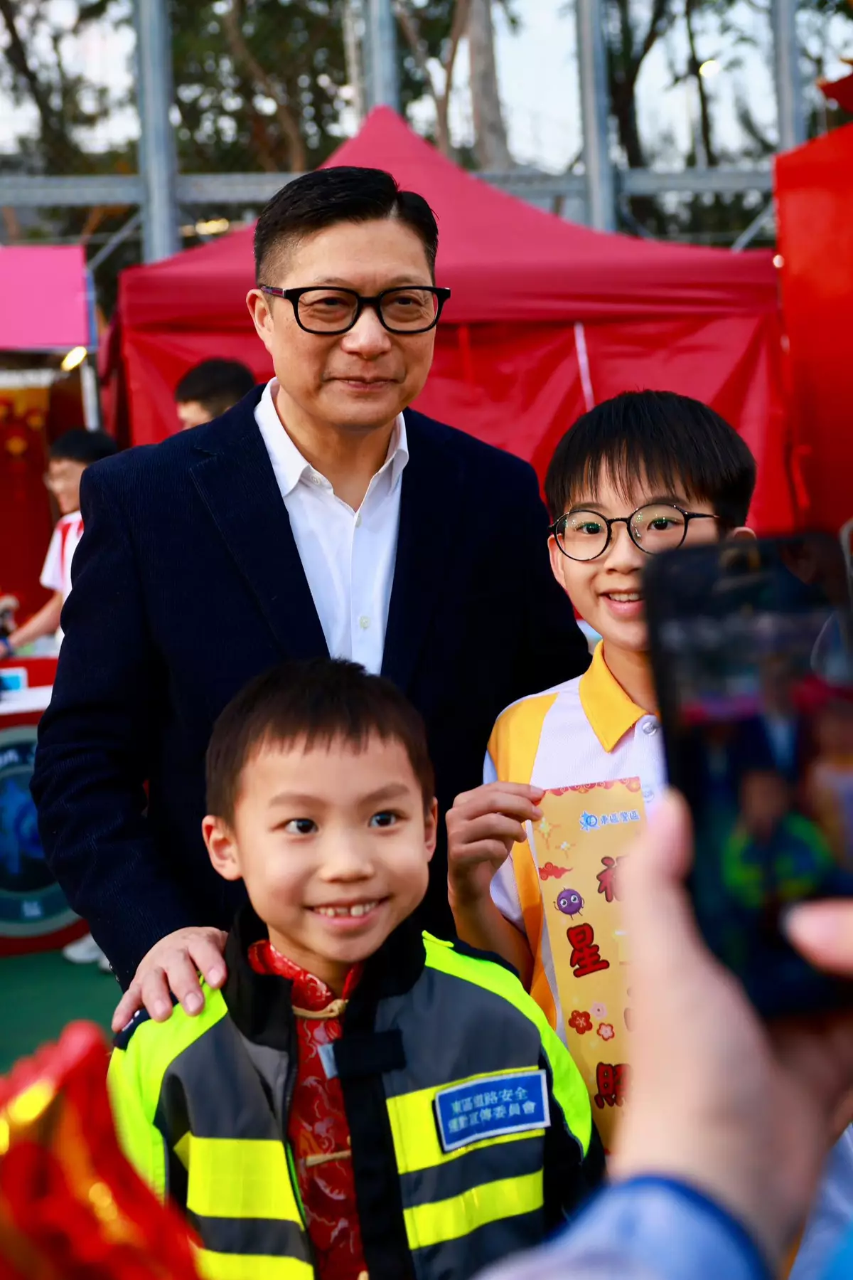 鄧炳強亦趁機擺封利是添氣氛,他特意預祝保安局同事馬上好運,最重要是馬力全開,繼續服務市民。