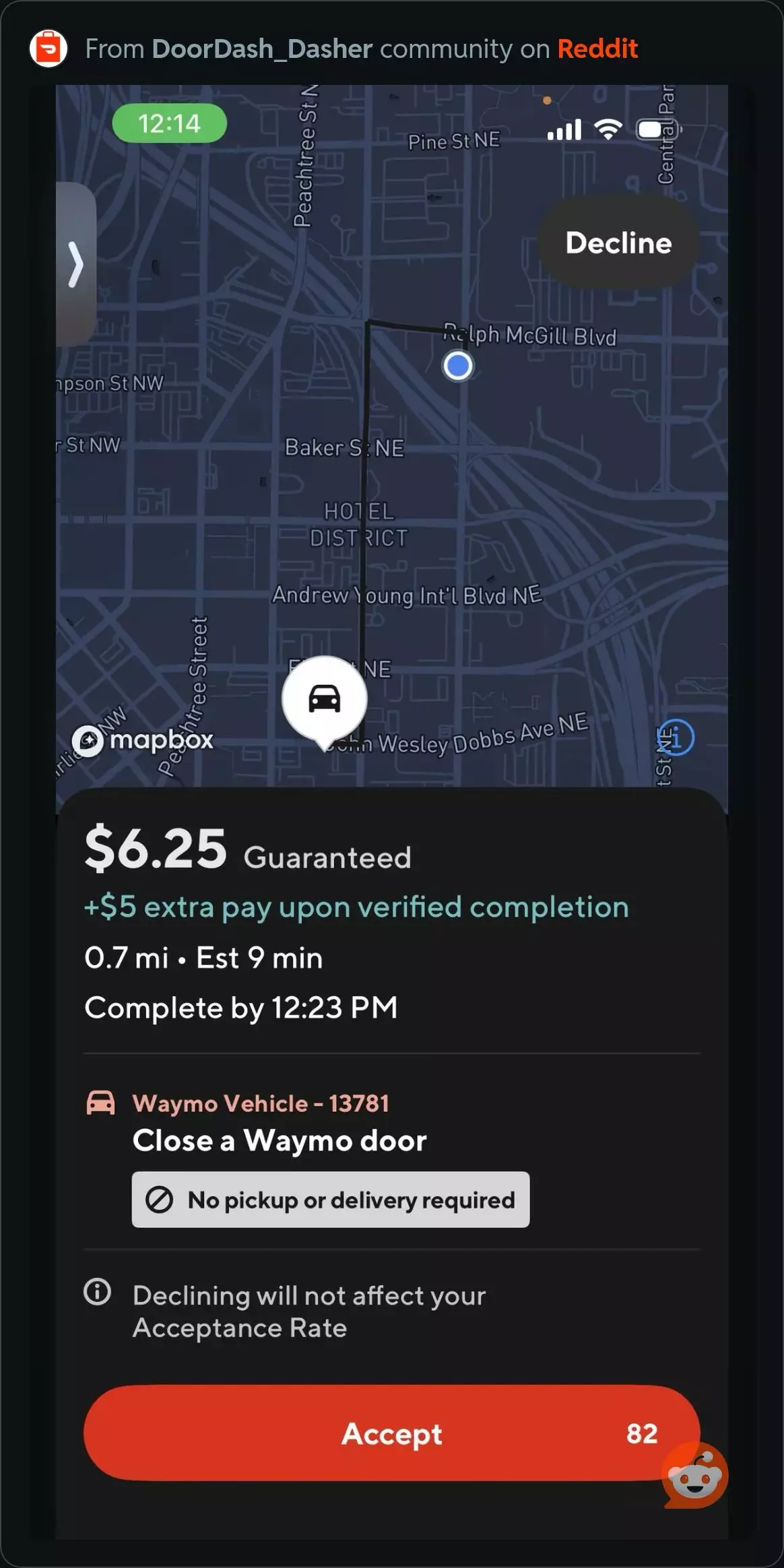 Waymo hiring DoorDash drivers to close car doors in Atlanta (Spotted on Reddit)