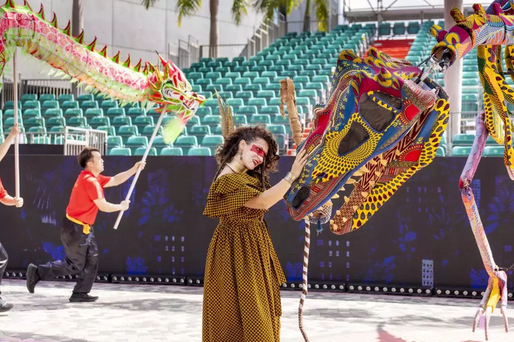 另一焦點是由意大利團隊帶來的「奇幻恐龍」(Cromosauro),以精密機關操作高逾5米、長達7米、色彩鮮艷的巨型恐龍,形態迫真。隊伍將與中國香港中國國術龍獅總會同場獻技,上演一場別開生面的「雙龍匯演」,東方的夜光龍與西方的奇幻恐龍同台共舞,象徵中西文化交融,祝願市民龍馬精神、喜氣洋洋。