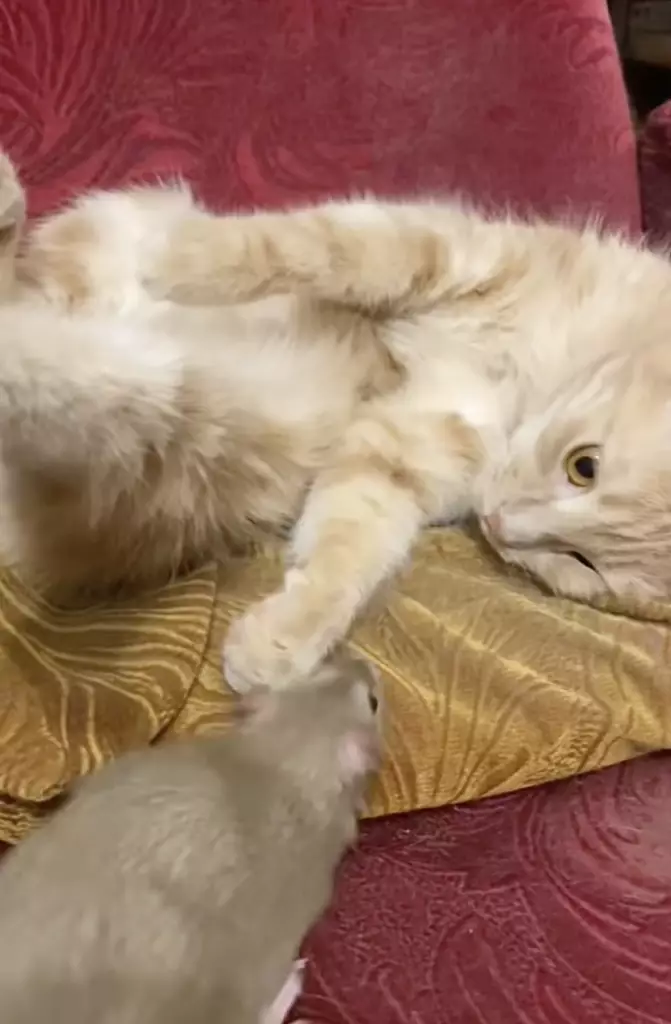 俄羅斯竟上演「Tom and Jerry」真實版?俄羅斯一名網民Irina Kamenskaya上傳的影片顯示,家中飼養的貓咪 Perseya 與老鼠 Filya 完全打破物種界限,展現出極為親密的相處模式。這對「貓鼠搭檔」不僅沒有敵意,反而如同家人般互相依偎,畫面溫馨動人。