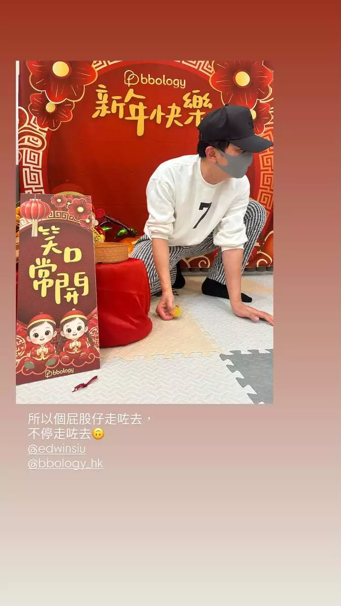 此外,黃翠如還在IG Story分享為哈哈拍賀年照的花絮,這項「任務」難度甚高,可見蕭正楠拿着揮春,同時想讓囝囝坐好拍照,但好動的哈哈卻在四圍爬,所以全程只拍到他屁股仔和腳仔,十分搞笑!