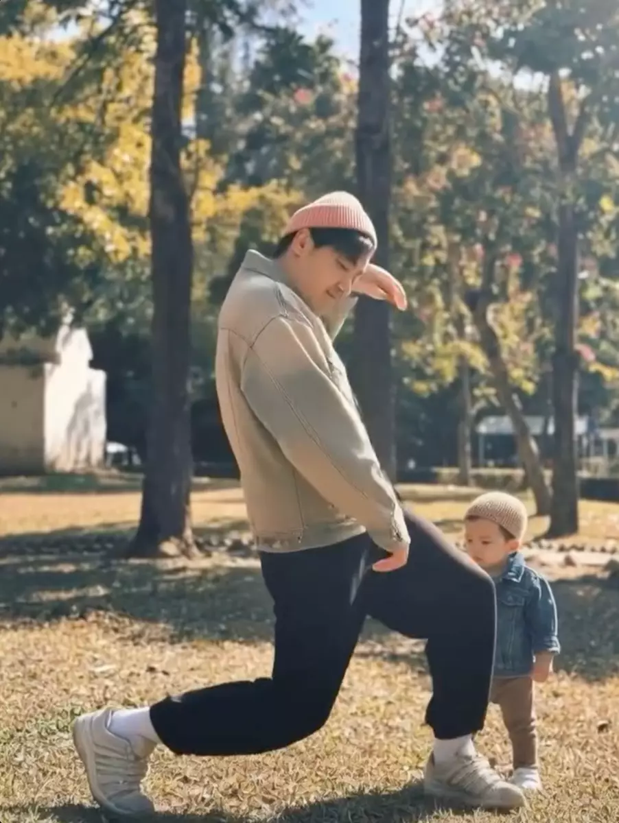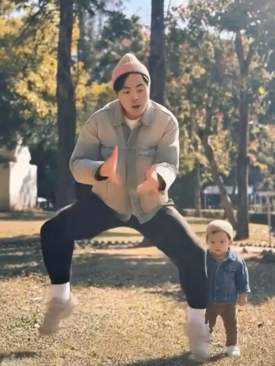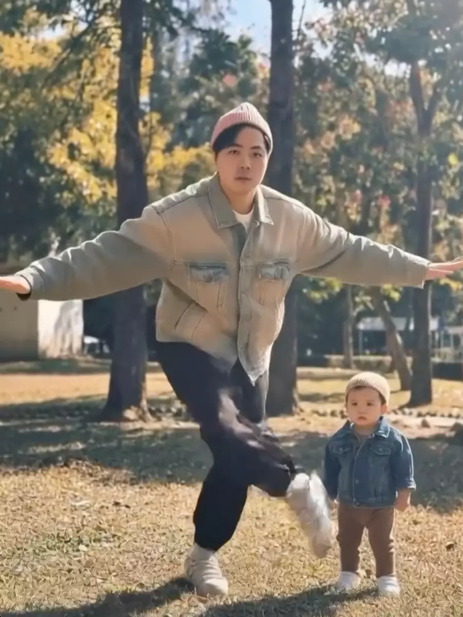 而黃翠如亦在IG貼出老公與囝囝 坐在草地的合照,並留言:「點說清,我的情人,和情人他的兒子,祝情人節快樂。#情人節識做#叫個兄弟幫我整AI片要兩個仔一齊跳舞#佢整條咁嘅片比。蕭正楠,情人,快樂。」相中可見,蕭正楠擺出chok爆的pose,哈哈坐在爸爸的大腿上,兩父子非常合拍!黃翠如同時分享一段蕭正楠跳舞的AI影片,片中哈哈站在爸爸身後,一臉無措的看着瘋狂起舞的爸爸,畫面好爆笑!