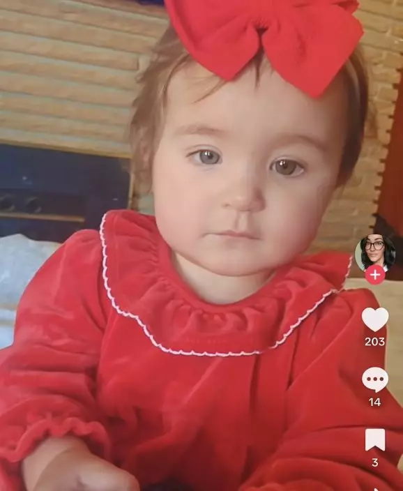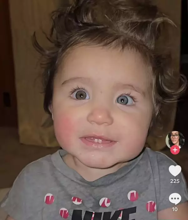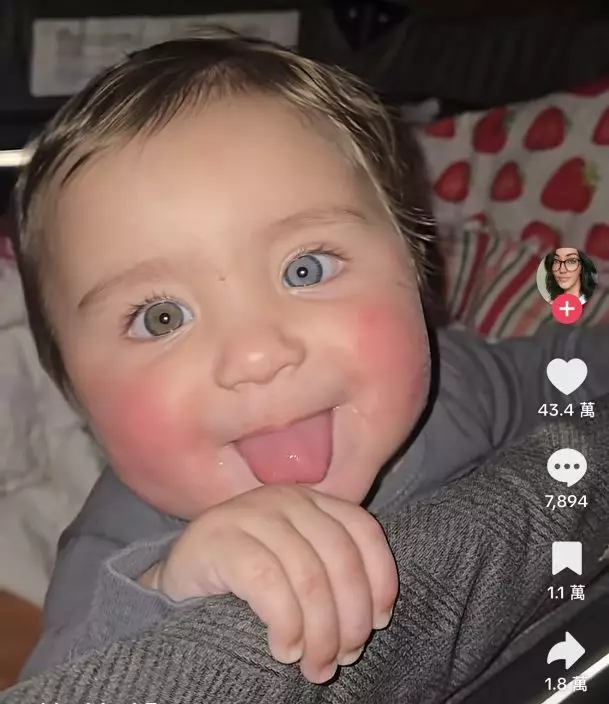 女嬰擁三色眼睛頭髮稀疏捲曲疑屬嵌合體綜合症。TikTok圖片