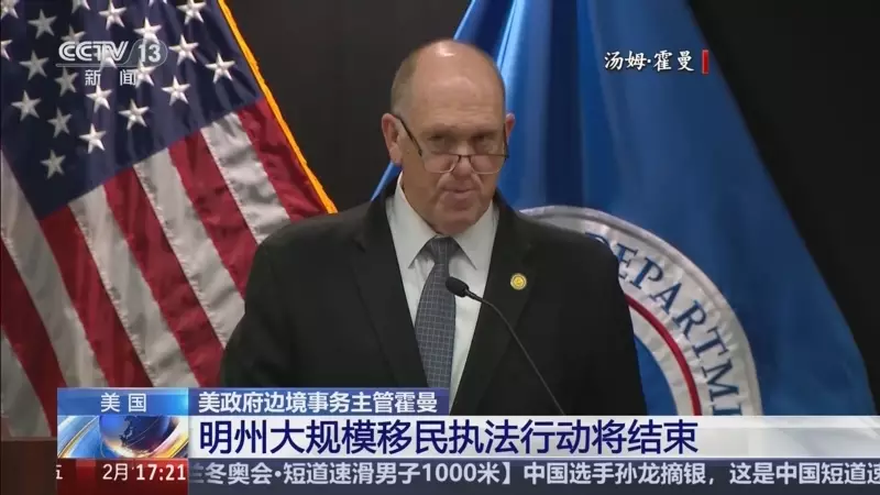 被美國總統特朗普派往明尼蘇達州接管當地聯邦執法行動的美國政府邊境事務主管霍曼表示,過千名移民執法人員已撤出明尼蘇達州雙城地區,即是明尼阿波利斯市和聖保羅市,未來幾日還會有數百人離開,一支小型安全部隊將短期駐留,保護剩餘的移民執法人員。