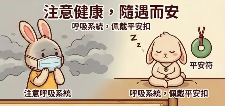屬兔者今年運勢溫和,適合沉澱與規劃,不宜冒進。事業上易獲同事支持,但需主動爭取表現機會。財運平穩,宜穩健理財,避免借貸。感情運溫馨,單身者可透過朋友介紹認識新對象,已婚者宜多表達關懷。健康注意呼吸系統,空氣品質差時減少外出。